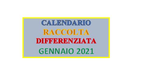 Si allega il calendario raccolta rifiuti per il mese di gennaio 2021