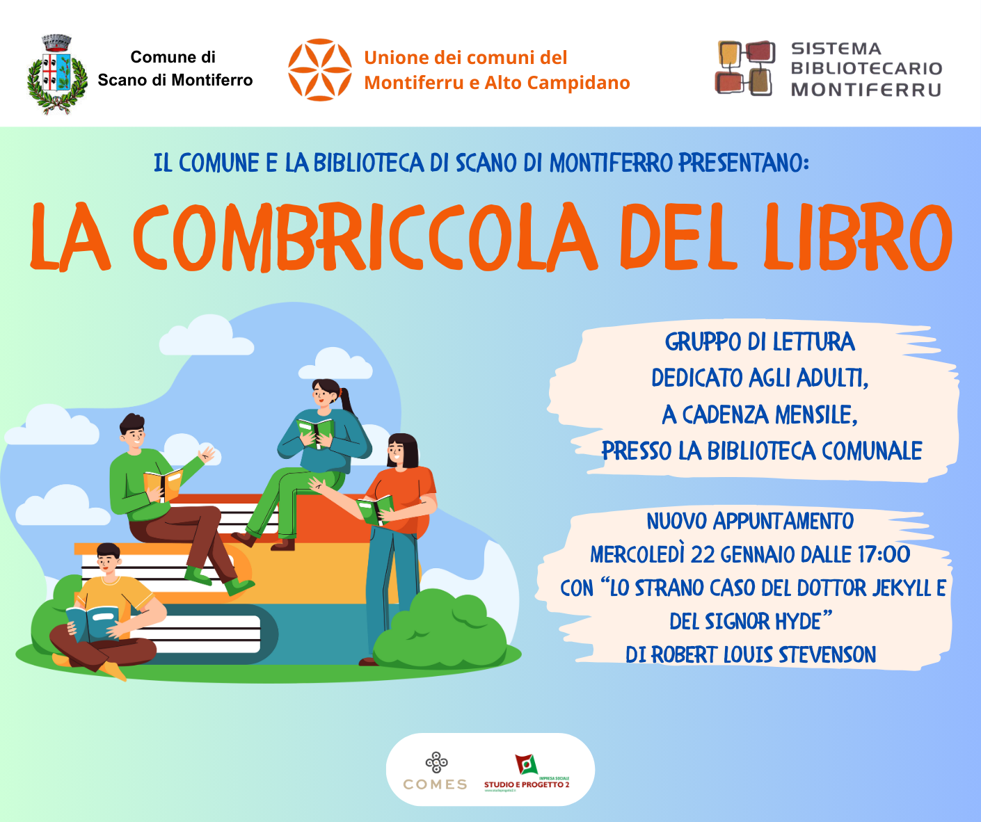 Gruppo di lettura "La combriccola del libro" 13/01/2025 - Ufficio Affari Generali Mercoledì 22 Gennaio, dalle ore 17:00, presso la Biblioteca comunale