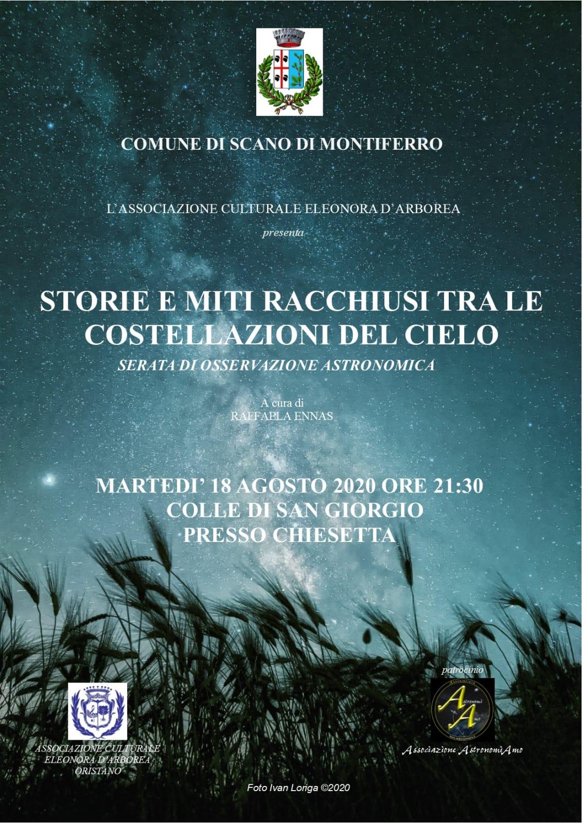 17/08/2020 - Ufìtziu De Sa Limba SardaPro sos amantiosos de su chelu isteddadu, su Comune de Iscanu paris cun s'assòtziu culturale "Lionora de Arbarei" ant aparitzadu pro cras 18 de austu 2020 unu sero de osservatzione de sos isteddos